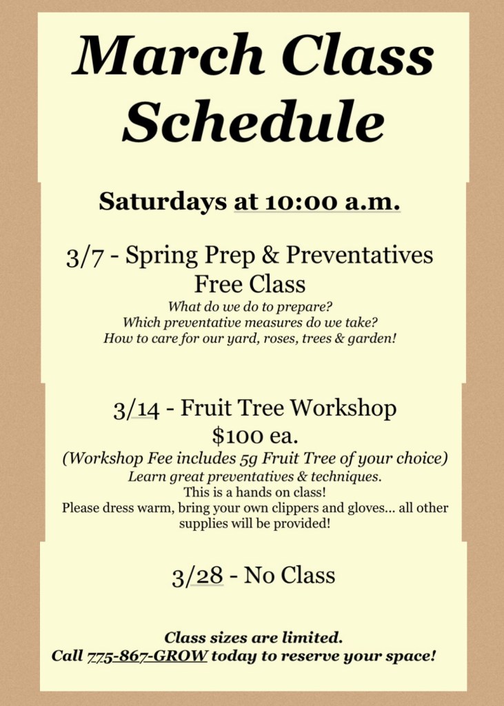 COST- FREEClass is limitedPlease call to sign up!775-867-GROW