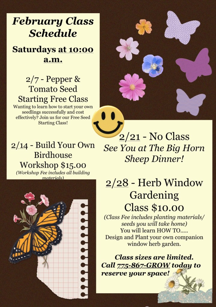 COST- FREEClass is limitedPlease call to sign up!775-867-GROW